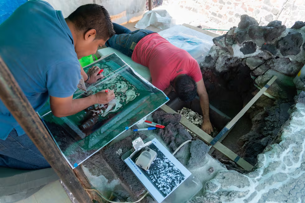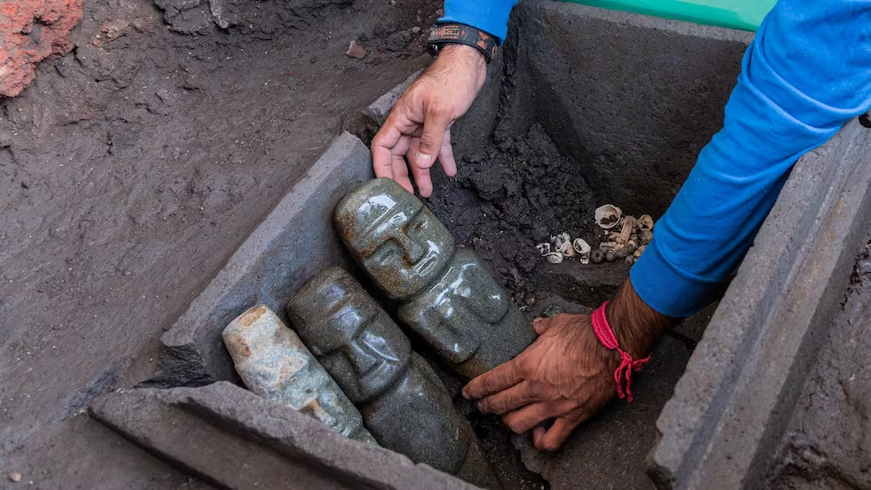 Los investigadores del Proyecto Templo Mayor rescatan seis cajas de piedra con decenas de estatuas de piedra verde, vestigios de las conquistas del rey azteca