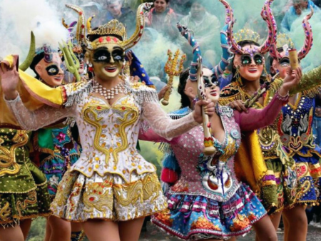 El carnaval boliviano celebra la sincretización entre tradiciones shuar, awajún e hindúes; su música incluye instrumentos tradicionales como zampoñas y charangues.